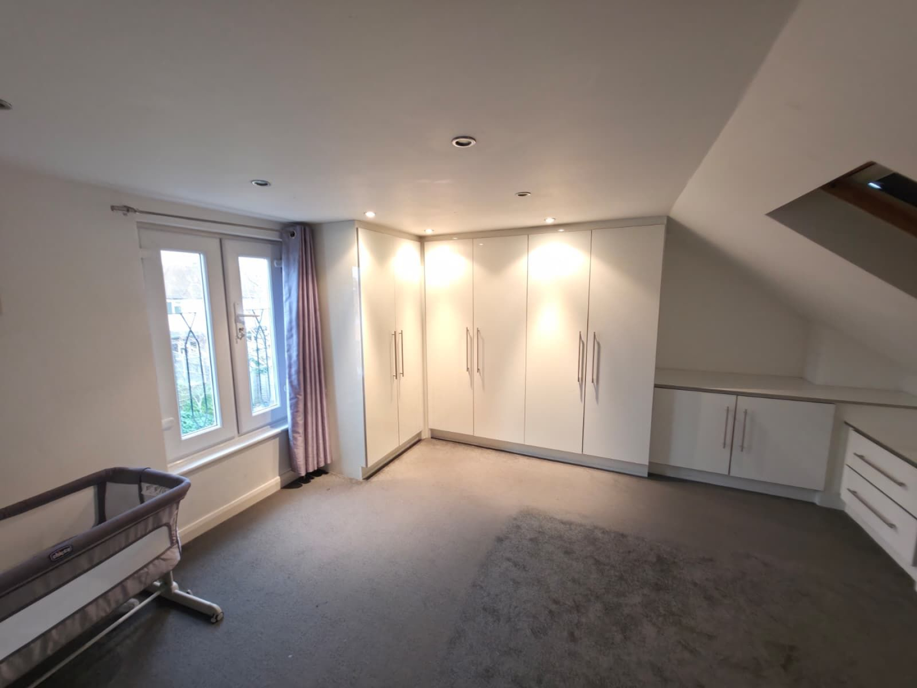 BEDROOM ROOM 1 (3.5m x 3.4m ) : The property includes generous-sized bedrooms, each featuring contemporary décor and ample natural light. The master bedroom is spacious and bright, offering plenty of storage options with built-in wardrobes. The mirror wardrobes shows enlarged spacious room and adds elegance to the room.