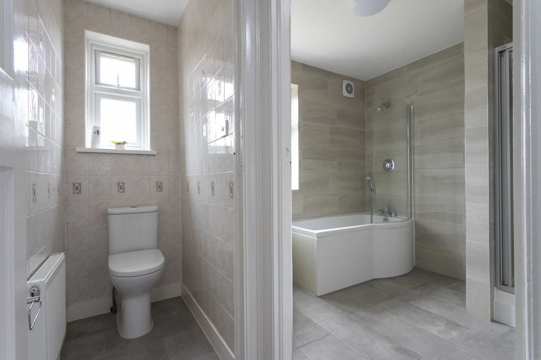 Bathroom: 8'6" x 8'4" (2.582m x 2.529m) This first floor bathroom has both Shower area and Bath tub fitted and it is very good in size. Tiles are fitted all over the bathroom.